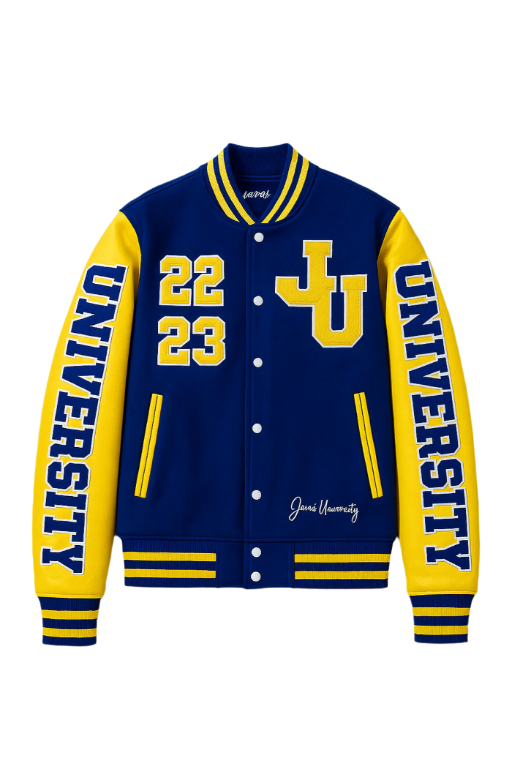 Emblazoned with bold “JU” and “University” patches and the iconic 22/23 detail, it’s designed to make you stand out on and off campus. The striped cuffs and collar add a nostalgic touch, while the signature “JAVAI UNIVERSITY” embroidery seals its exclusive appeal.